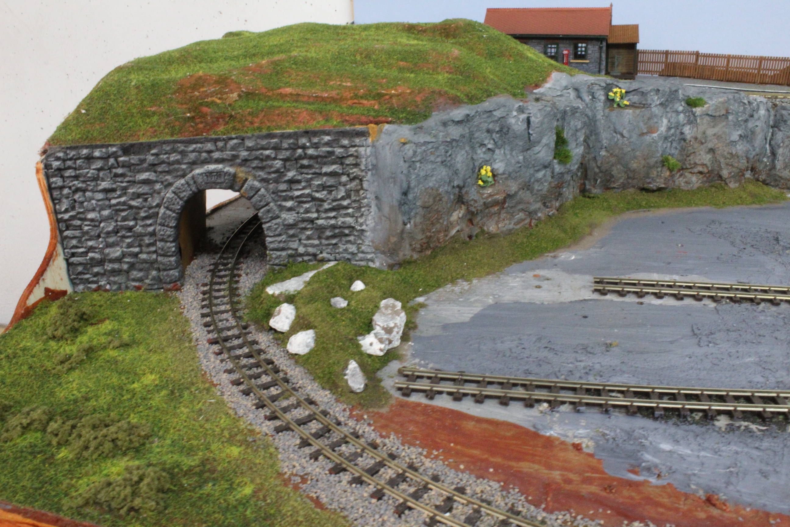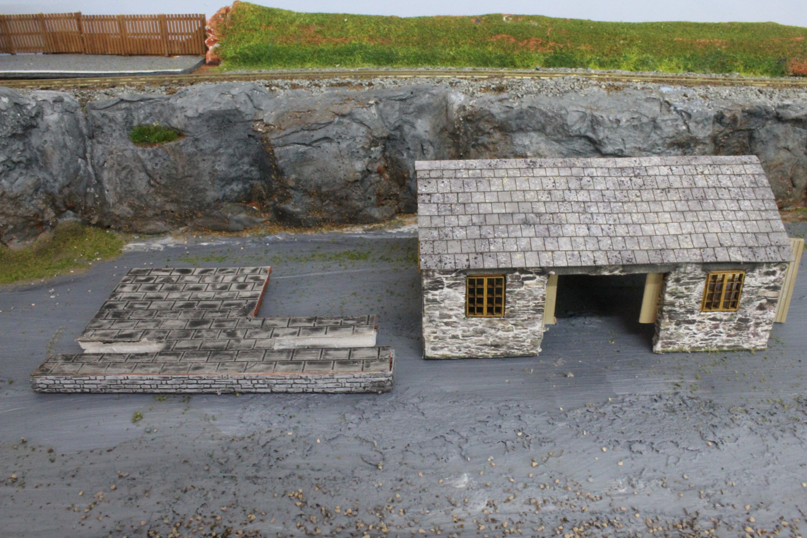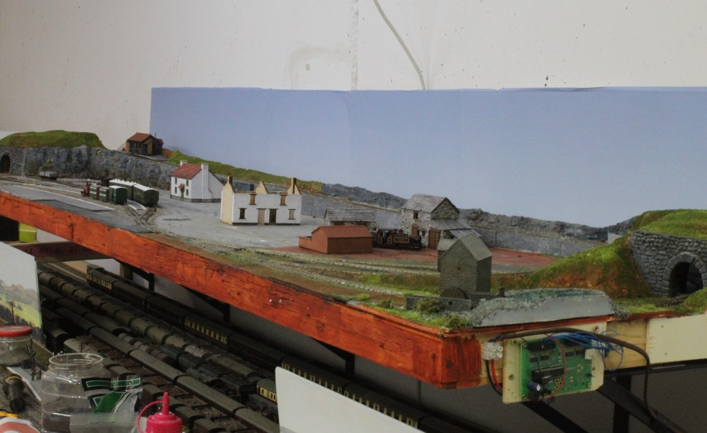 This is intended to be the central board of three and is the only one that will provide a continuous running loop, to the left the second board will feature a climb to a Slate Quarry and on the right the line will drop down to a Station in the Port with fishing quay.
