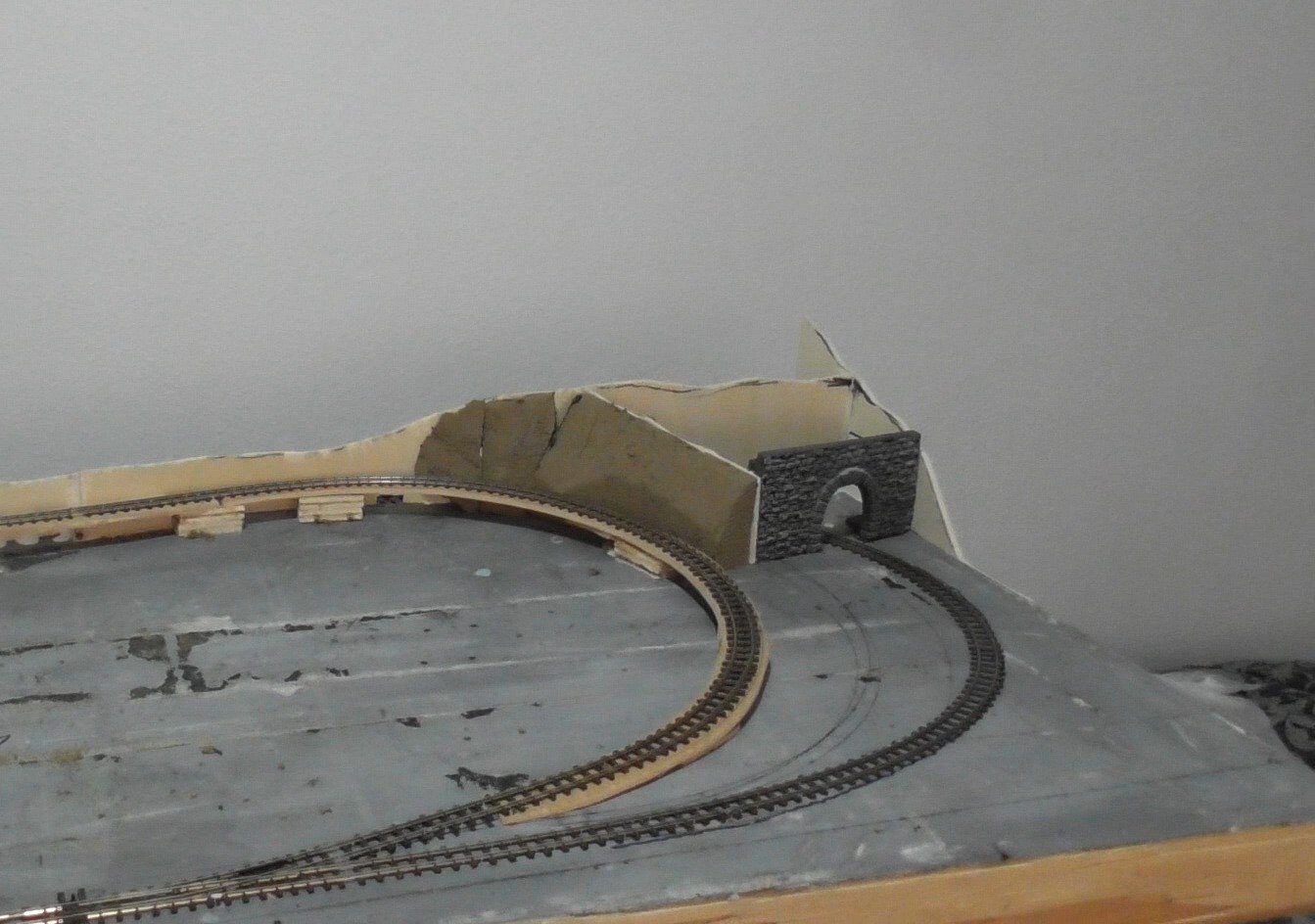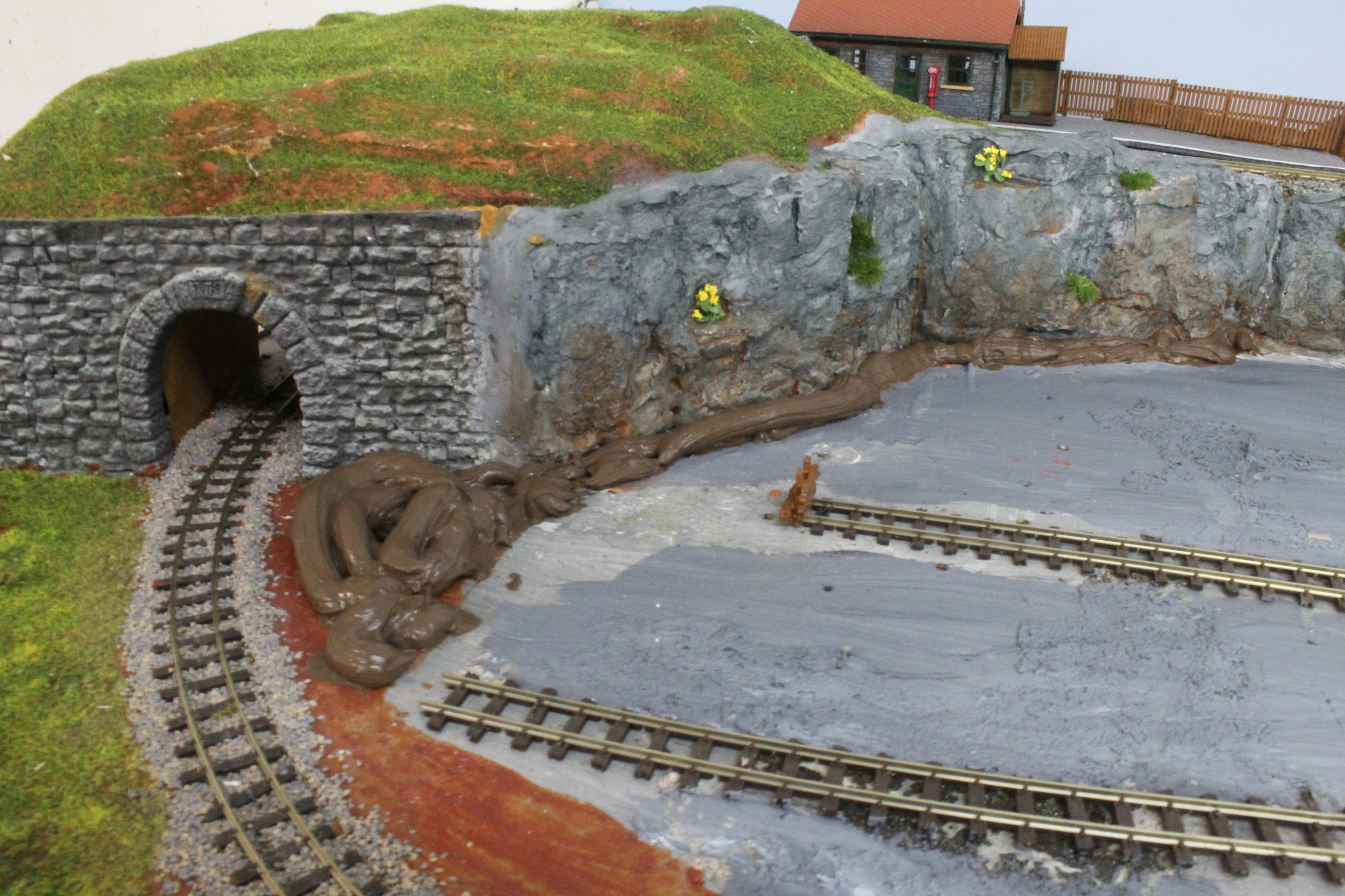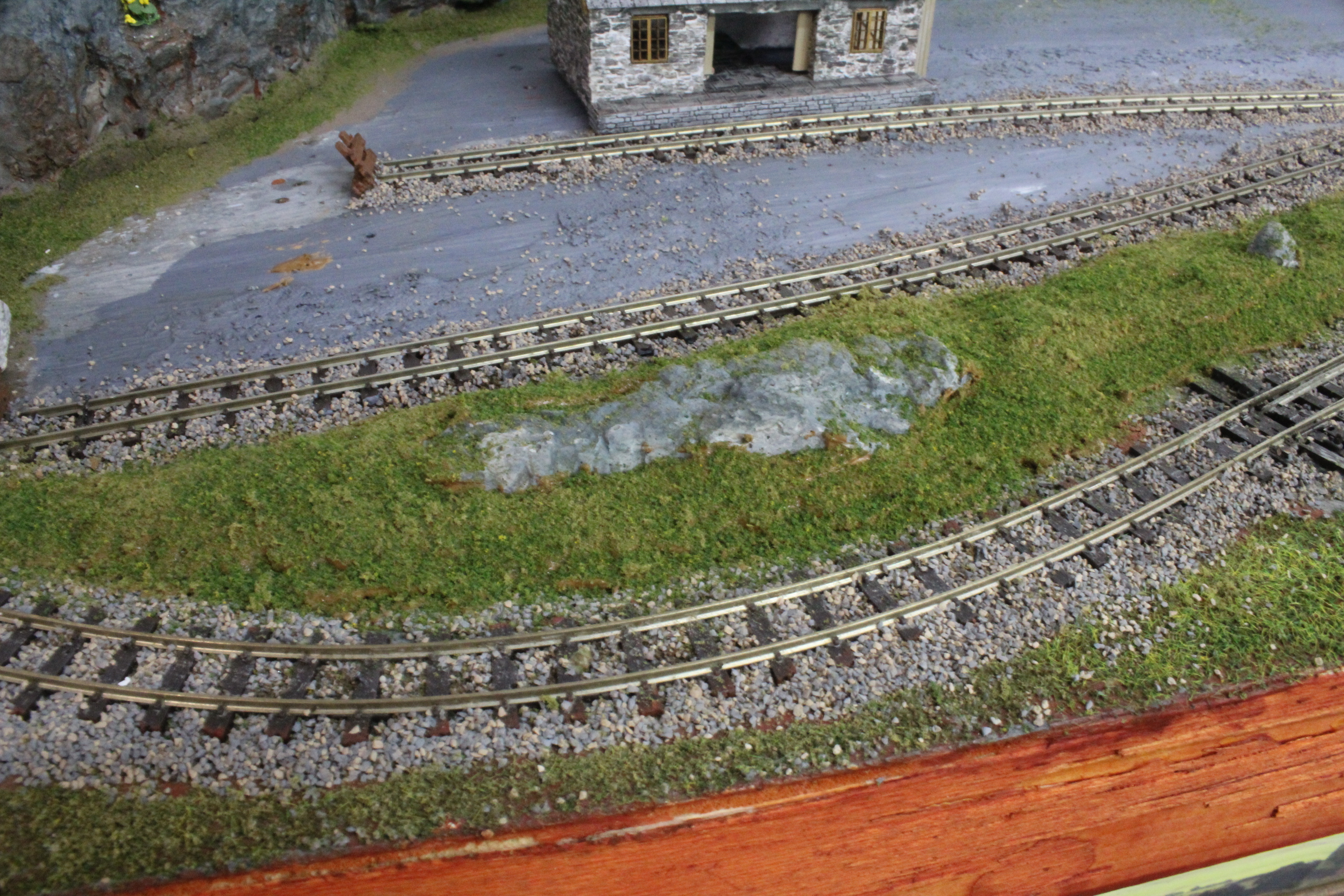 This is intended to be the central board of three and is the only one that will provide a continuous running loop, to the left the second board will feature a climb to a Slate Quarry and on the right the line will drop down to a Station in the Port with fishing quay.