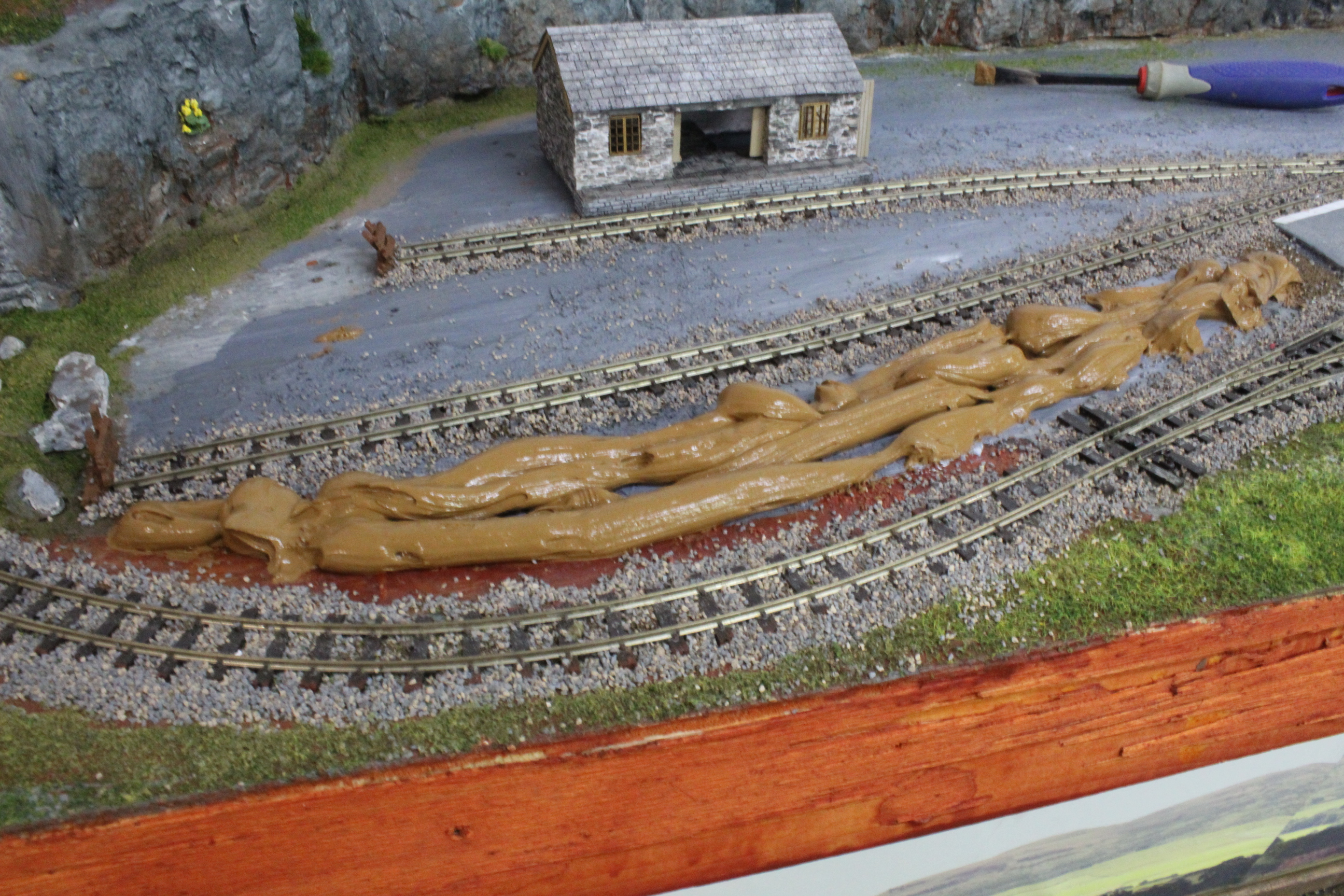 So, the Cottage has now been sited and bedded into the landscape with the help of a tube of some disgusting looking thick brown filler bought from the local DIY shop.