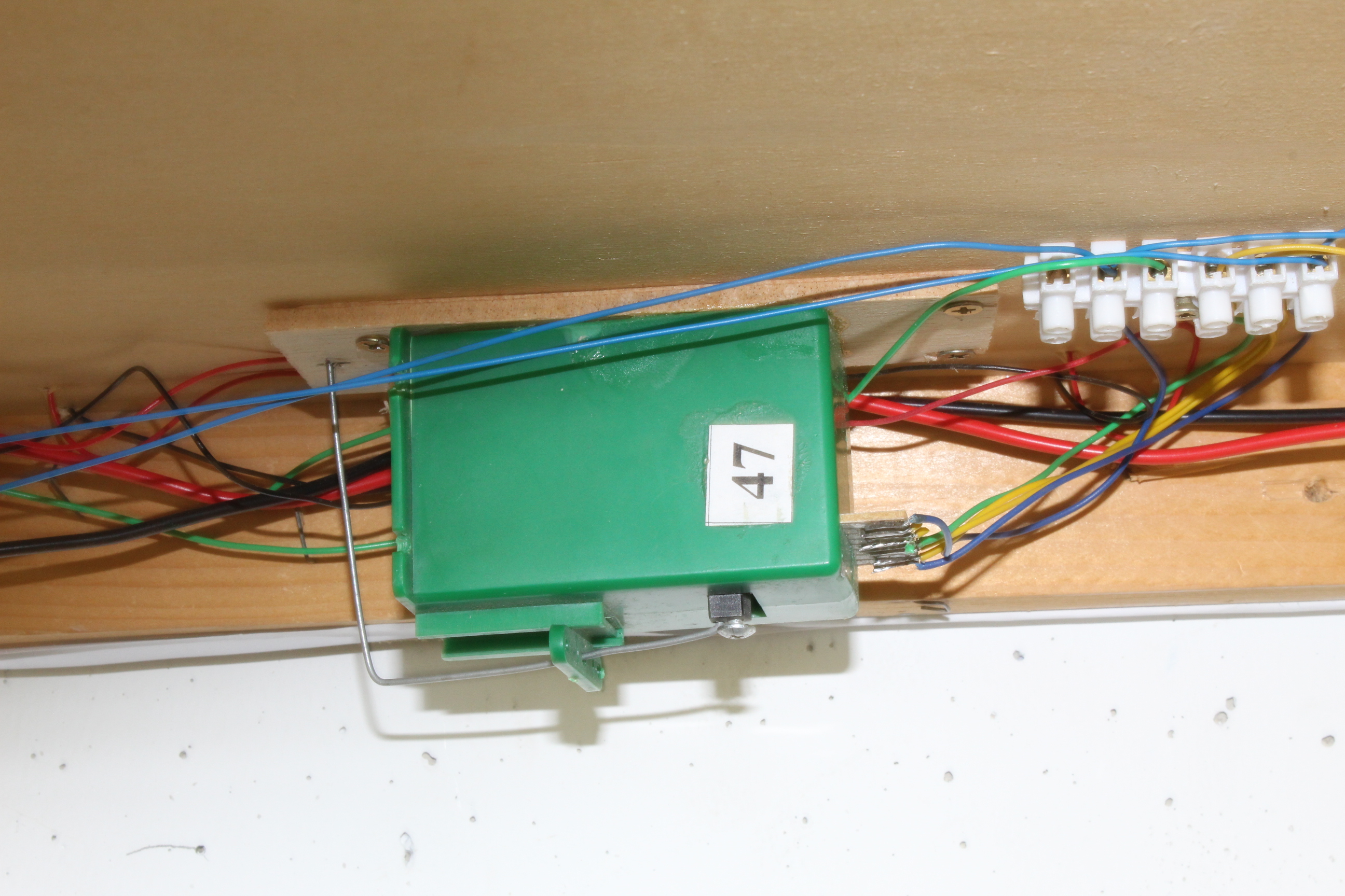 Well finally after a very long wait we can start making progress, the all important pack of Tortiose point motors have arrived so now I have enough to complete the board, it took three and a half months to get them and three trips before they got here. Lost in the post first time, returned with incorrect paperwork the second time but on the third trip they made it. So, now we can get the layout wired up and fitted on the wall brackets that have been patiently waiting for them.