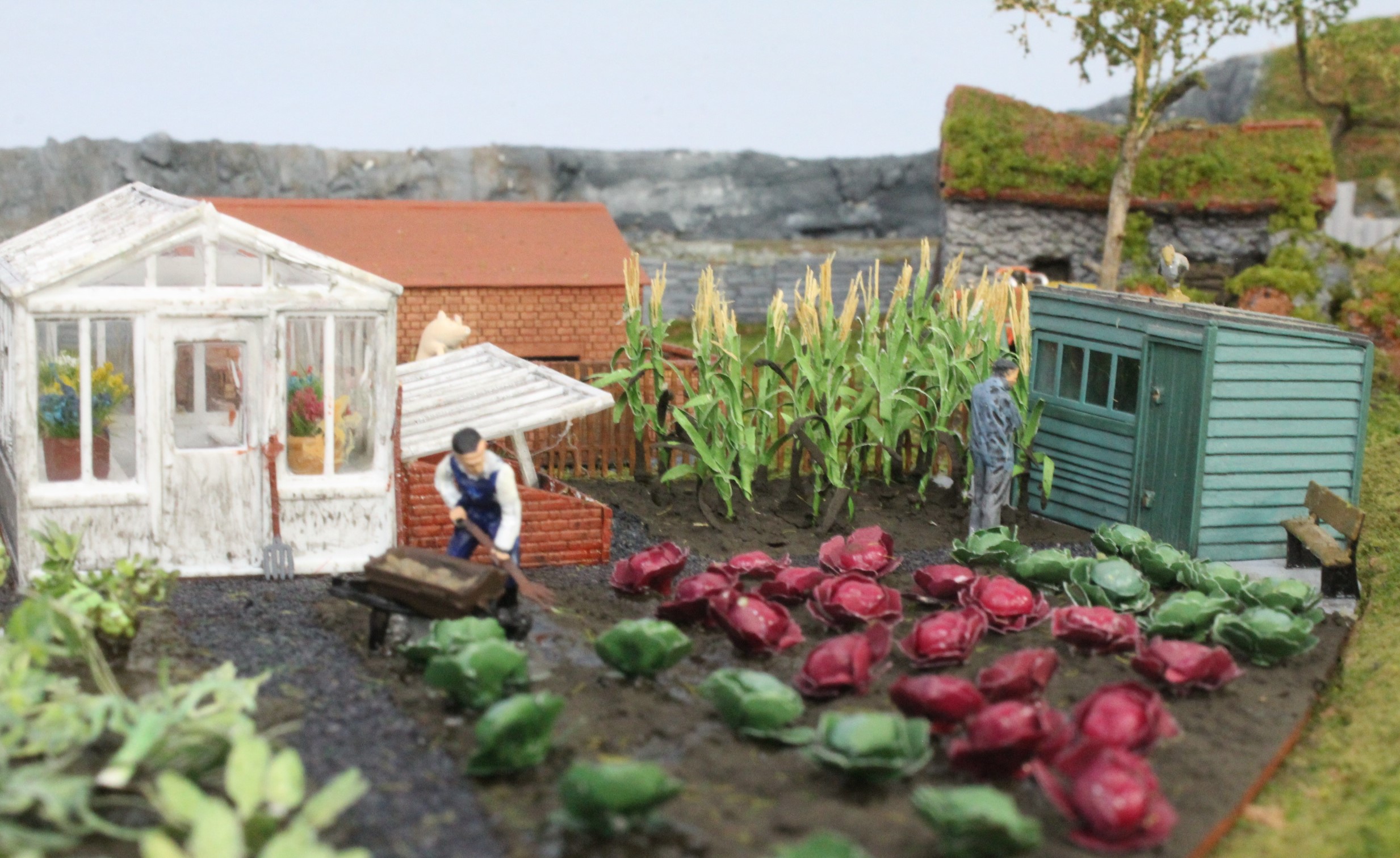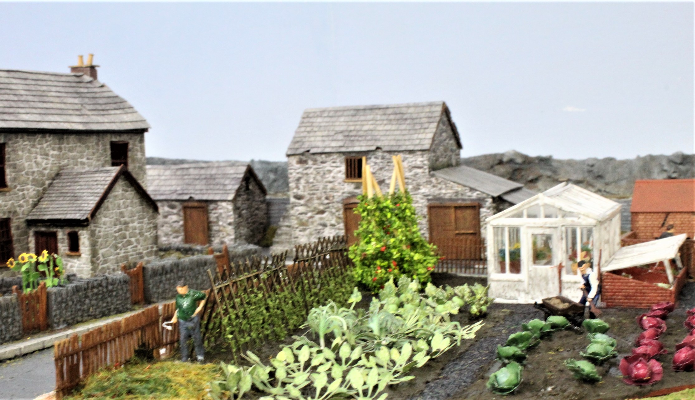 At one end of the layout there was an odd- shaped area to fill so I thought it might be a good place to build an allotment.