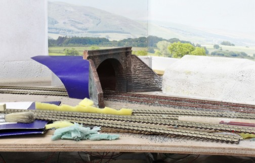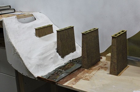 The embankments on either side were then made using bandages soaked in plaster built up on a frame of wood formers and compressed paper.
