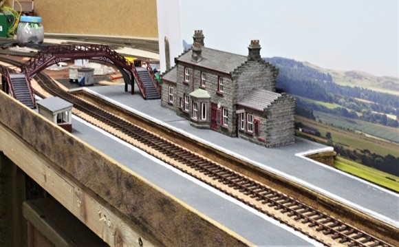 This new section of line across the viaduct and through the station has been constructed using Bullhead Rail as opposed to the Code 75 used in previous sections of the layout.
