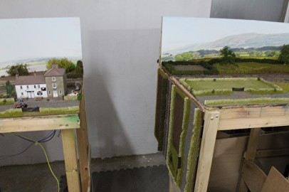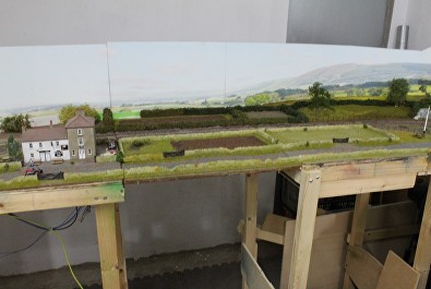 After leaving the station at the southern end the line runs out into the country. Originally I placed the lines too close to the backscene which restricted the space and made the embankment behind too steep, this looked wrong and left no room for scenic development.