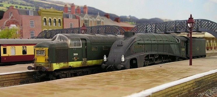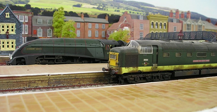 D9004 waits as Sparrow Hawk arrives and then with the Station windows rattling takes over for the rest of the journey.