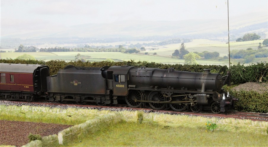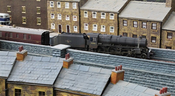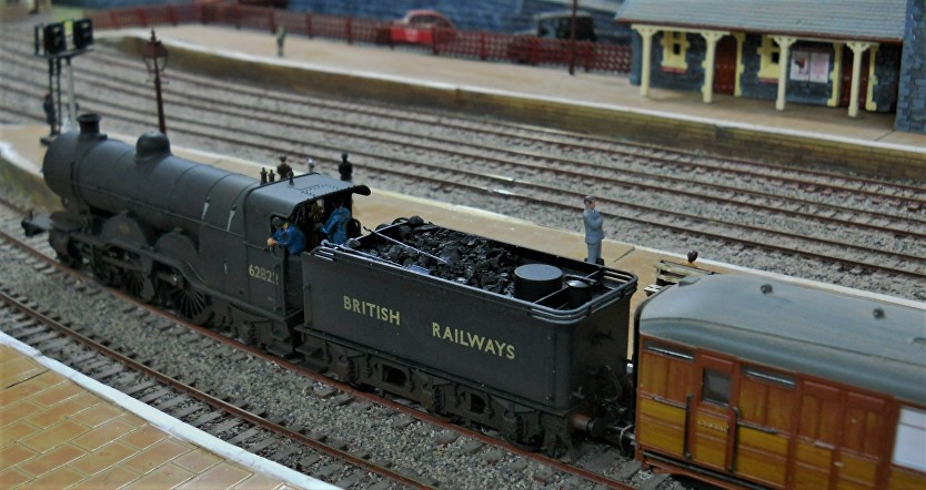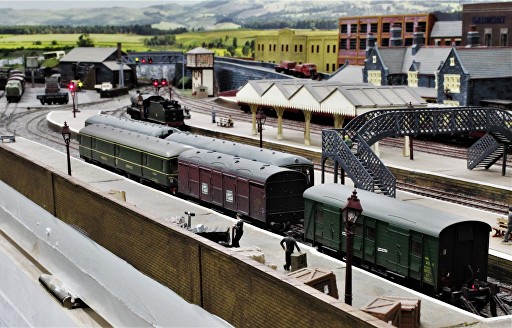 A Black 5 pulls in with a parcels train so that Station Pilot Engine can add two more coaches allowing it to depart.
