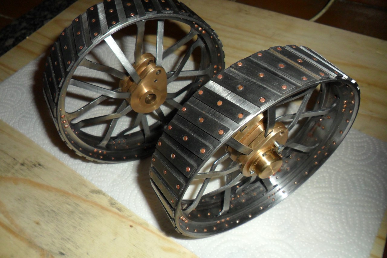 Feb 2014. I have started on the build of the Minnie traction engine,steam powered,scale 1:12.Couple of photos of the wheels hot off the lathe.More work to be done on them before fitting the spokes.The rears measure 153 mm diameter before adding the strakes. Estimated time for total engine completion,about 4 years,that’s if the wife does not have any 10 minute jobs around the house that get in the way.