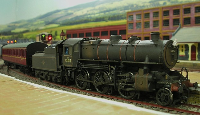 Ivatt Class 4 pulls into platform 3 with rake of new coaches plus passengers