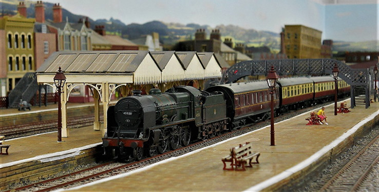 Patriot 45538 Giggleswick pulls in with the morning Residential, waits for a clear road and then departs on time.