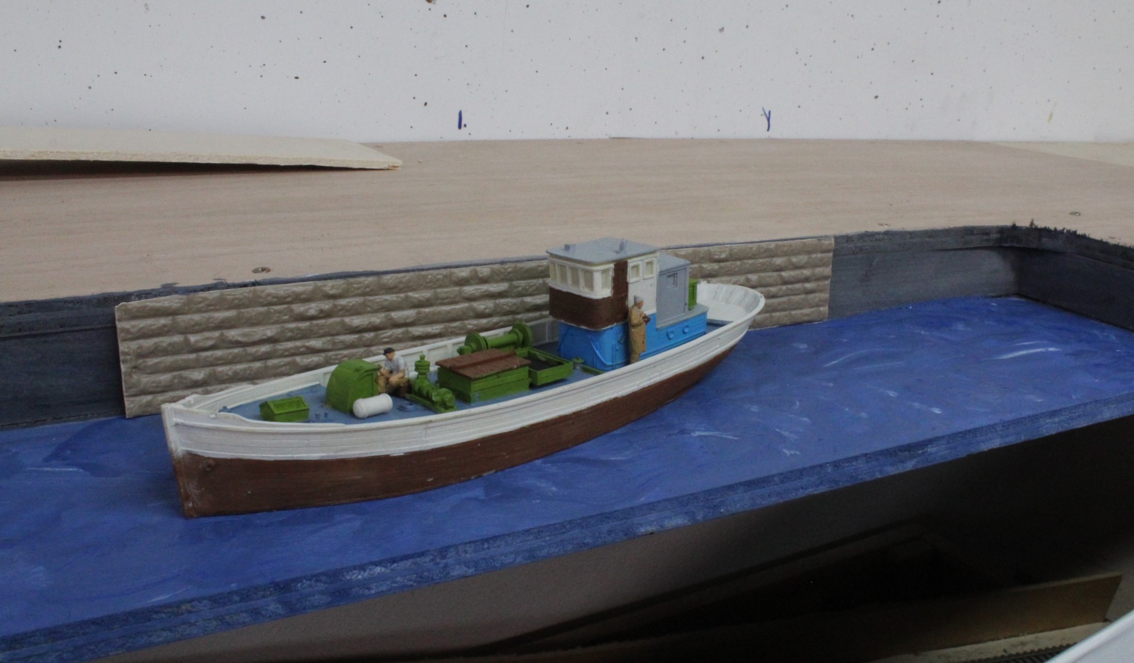 I have not attempted a harbour before so it was important to get this right first. The boat is an Artitec HO scale trawler which will be the biggest vessel in the harbour so this was used to get an idea of the depth and dimensions needed.