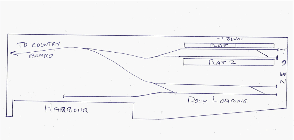 The second board will contain the Harbour including the the Town, Station and goods area (a lot to fit in a small space) so it needs careful planning, so here is the first sketch of the provisional layout.