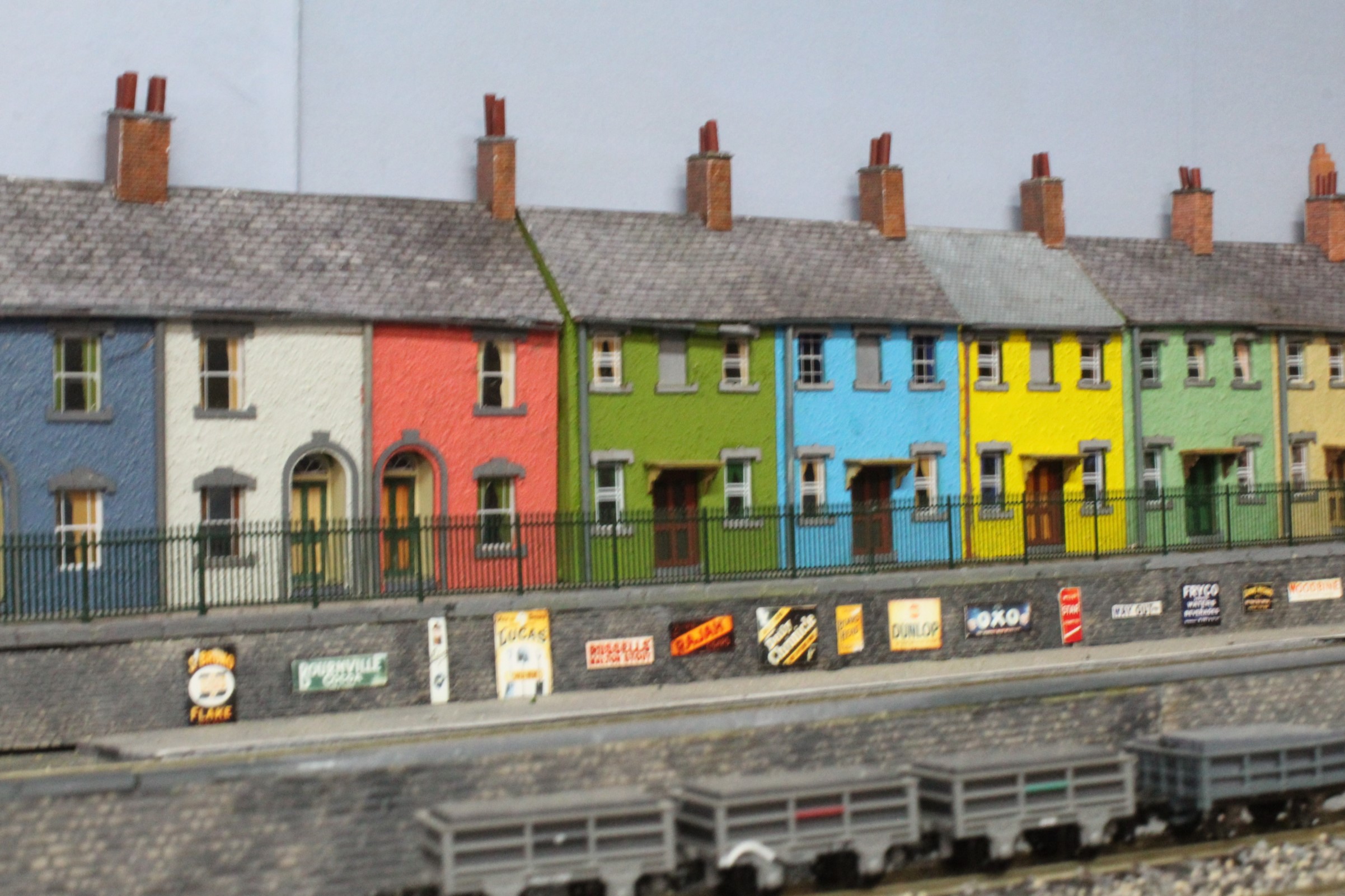 The next job to do was to start work on the Town, I wanted it to feature the painted cottages that are often seen in local seaside town so a row of these was made and painted using suitable pastel colours.