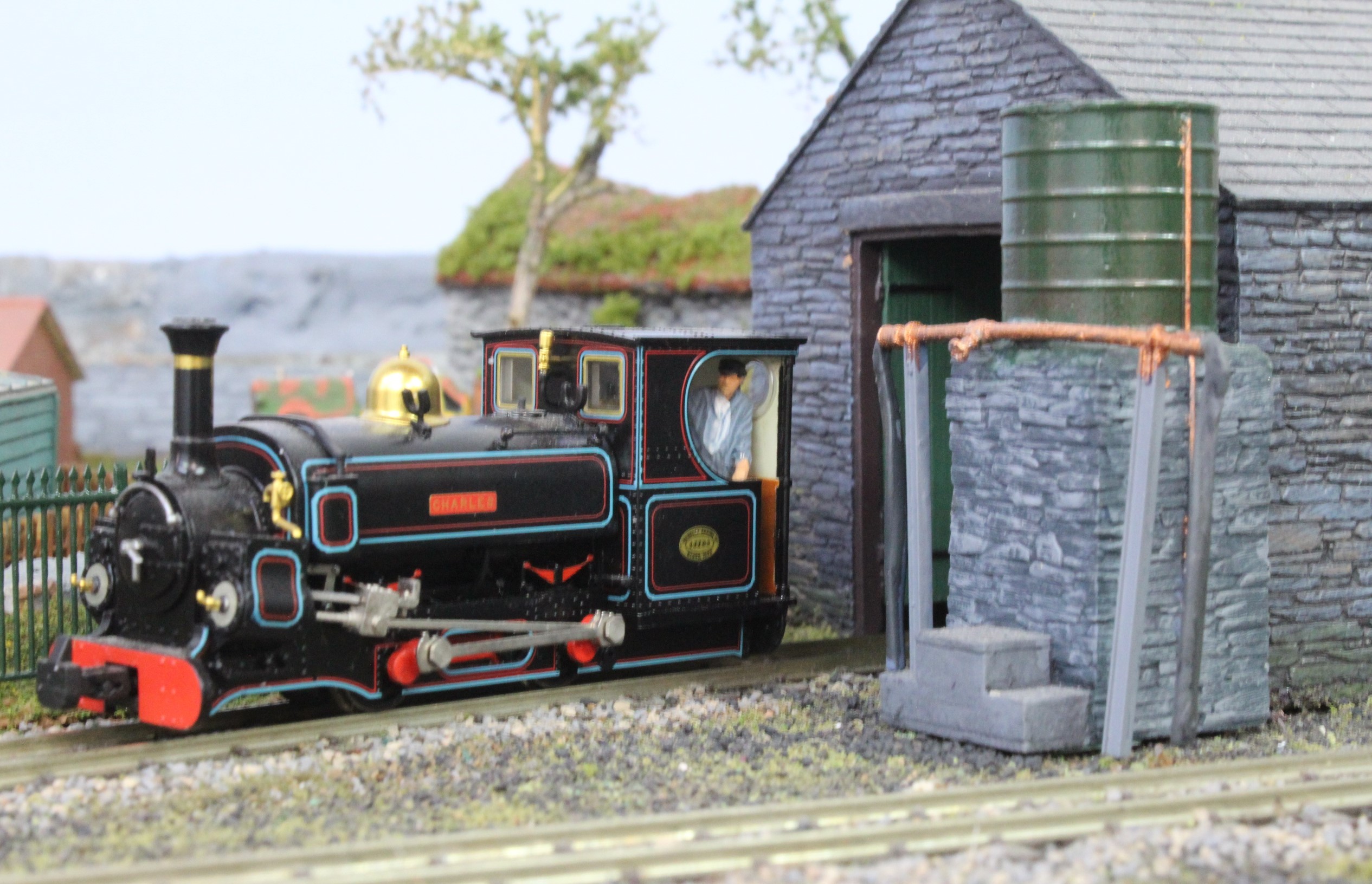 Finally the Water Tower was finished and placed, this type was designed especially for the Double Fairlie so that both boilers could be filled without moving the Loco.